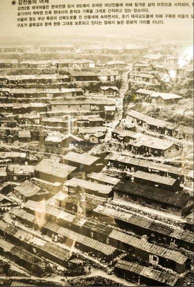 C’est suite à la guerre de Corée (1950-1953) que le village fut un lieu de refuge pour les réfugiés de guerre qui n‘avaient aucun endroit pour s’installer. Cho Chol Je ainsi que les adeptes du « Taegukdo » ont alors aidé les réfugiés. Ensemble, ils ont pu remplacer leurs maisons « bidonville » par les maisons en briques et en béton chamarrées que l’on connaît aujourd’hui. Jusqu’à aujourd’hui, les habitants de ce village vivent dans des situations de précarité.